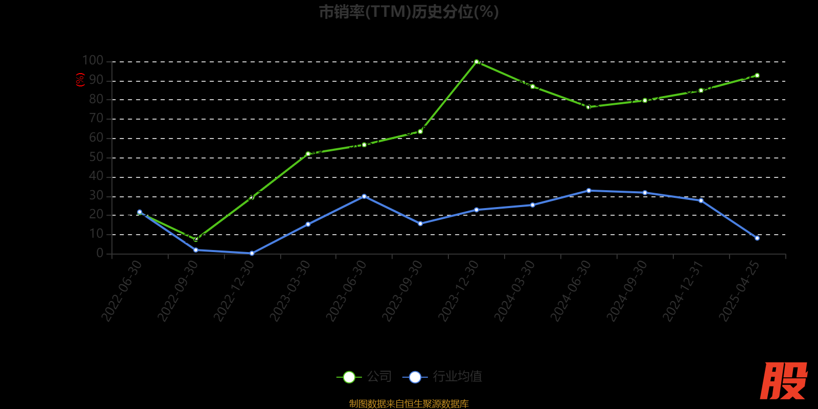 以4月25日收盘价计算,泓禧科技目前市盈率(TTM)约为100.2倍,市净率(LF)约3.18倍,市销率(TTM)约2.73倍。