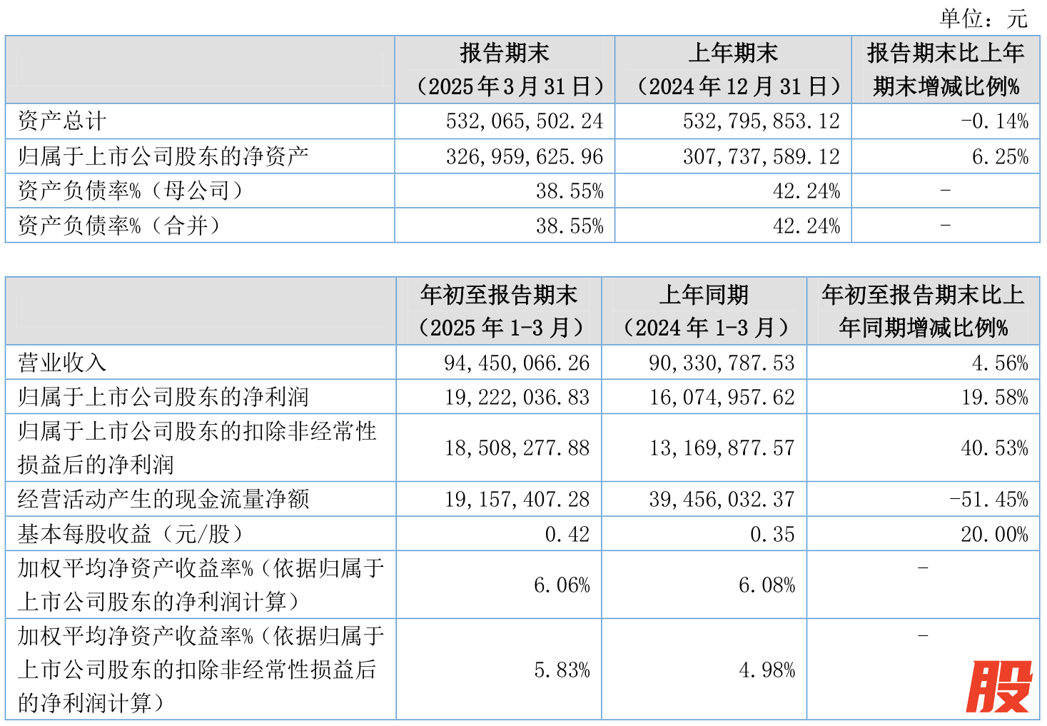 盈利能力方面, 2025年一季度公司加权平均净资产收益率为6.06%,同比下降0.02个百分点。公司2025年第一季度投入资本回报率为5.54%,较上年同期下降0.12个百分点。
