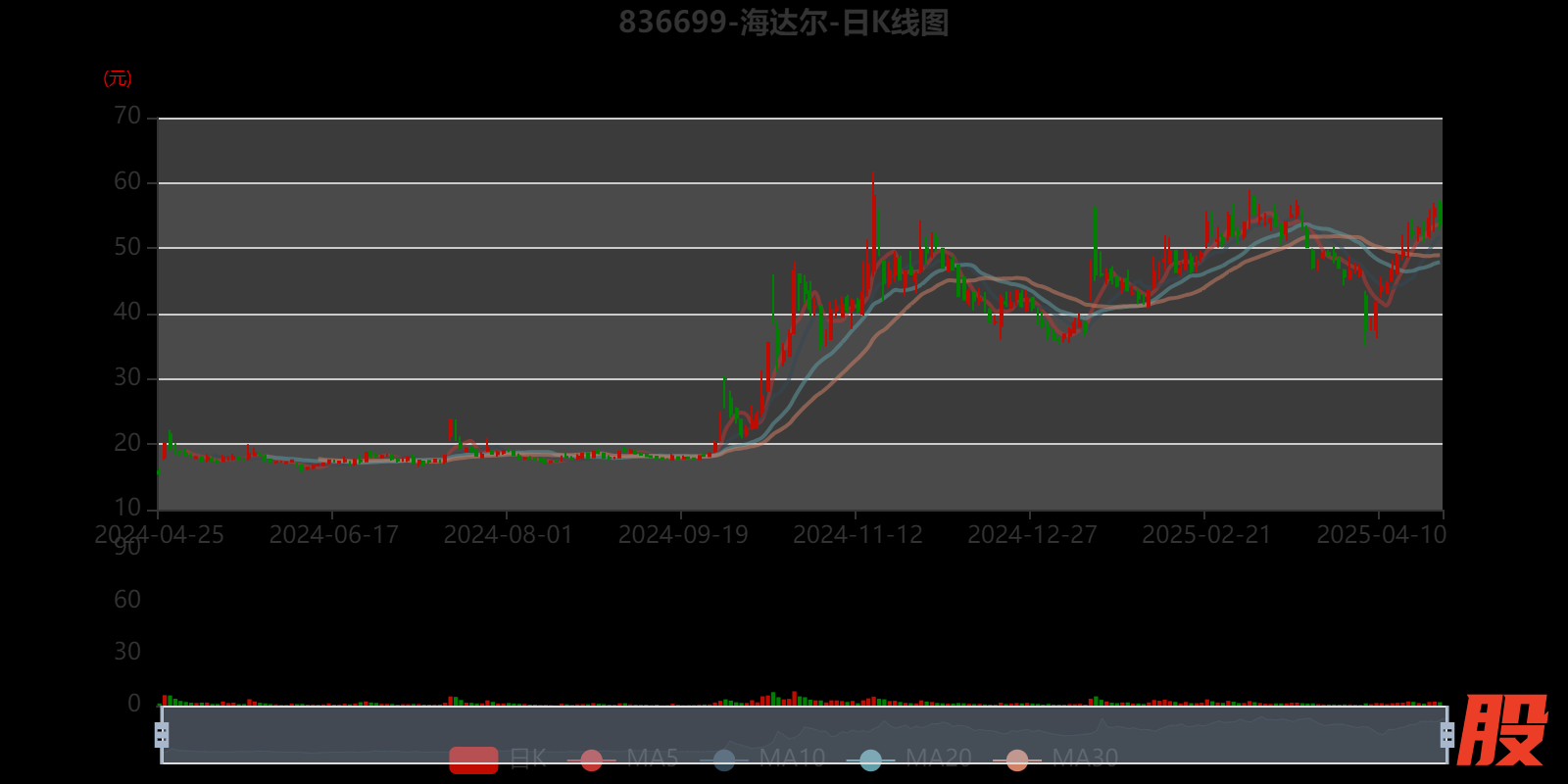 以4月25日收盘价计算,海达尔目前市盈率(TTM)约为28.97倍,市净率(LF)约7.49倍,市销率(TTM)约5.81倍。