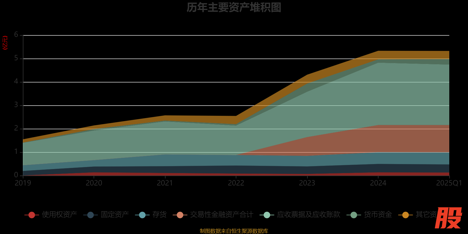 资产重大变化方面,截至2025年一季度末,公司货币资金较上年末增加67.98%,占公司总资产比重上升1.81个百分点;应收票据及应收账款较上年末减少3.13%,占公司总资产比重下降1.5个百分点;预付款项较上年末减少63.63%,占公司总资产比重下降0.84个百分点;应收款项融资较上年末增加114.61%,占公司总资产比重上升0.42个百分点。